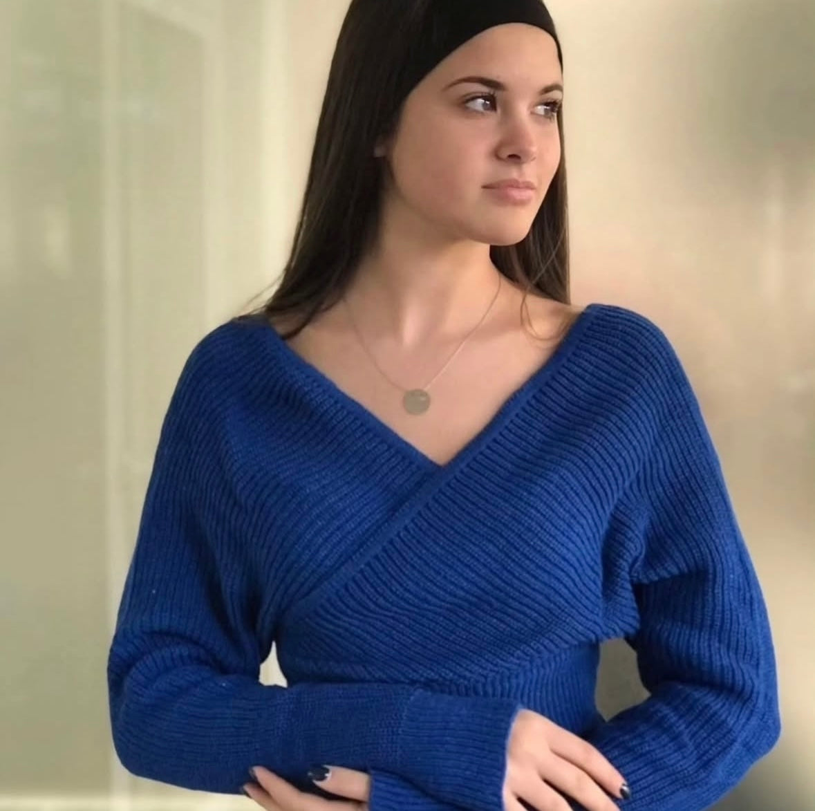 Mekan i udoban džemper sa elegantnim preklop dizajnom koji ističe liniju i daje ženstven, profinjen izgled.