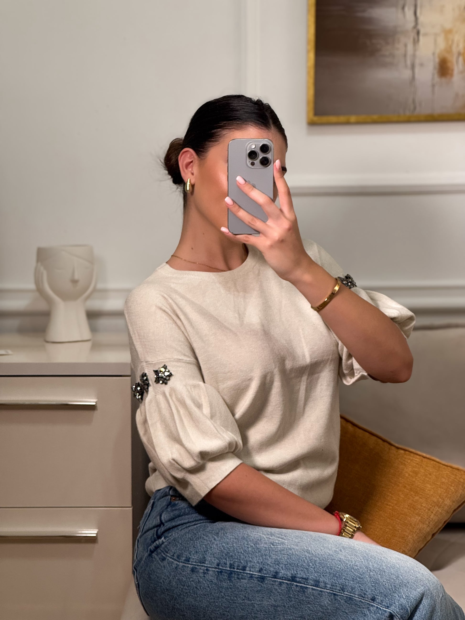 Kašmirski džemper sa unikatnim rukavima i detaljima ✨