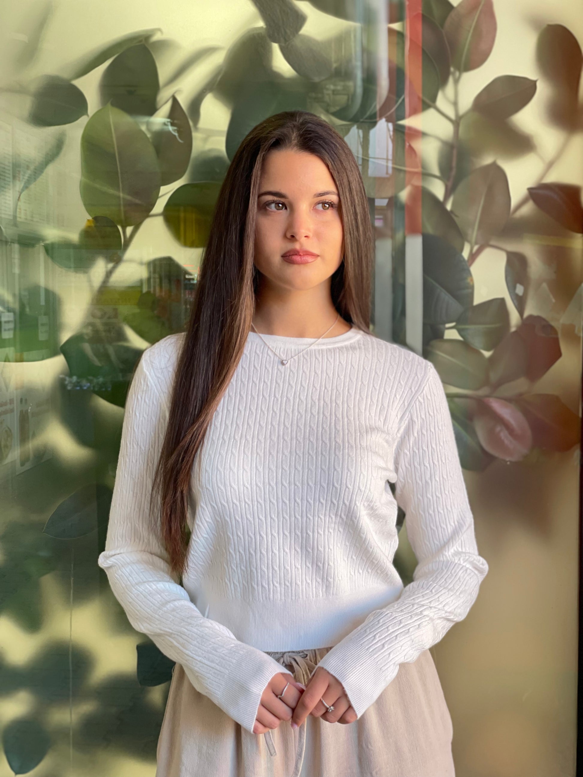 Naš džemper u univerzalnoj veličini izrađen je od mekanog i kvalitetnog materijala sa modernom rebrastom teksturom koja mu daje poseban šarm. Prilagođava se različitim oblicima tijela i lako se kombinuje – uz farmerke, suknje ili elegantne pantalone.