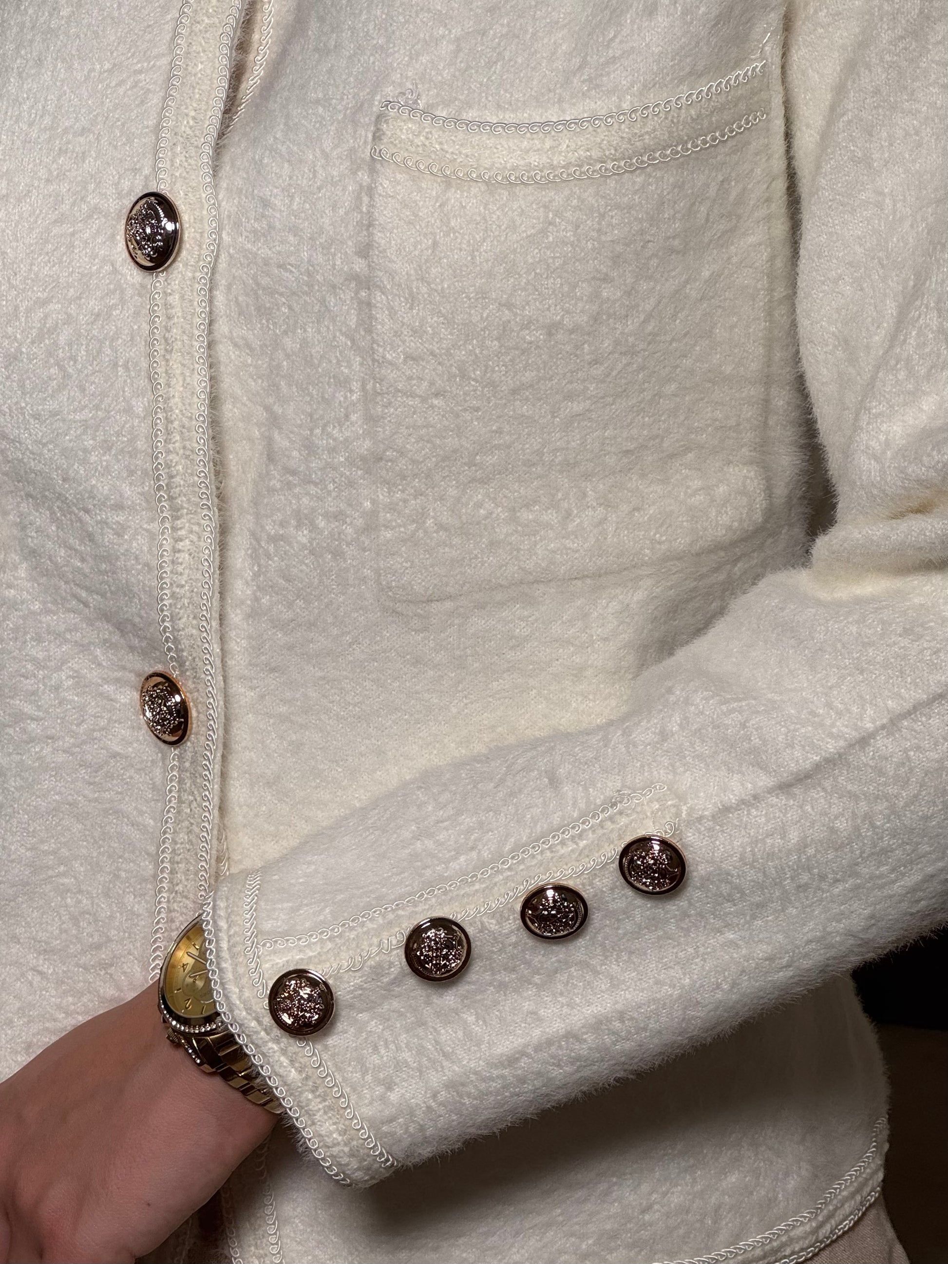 Naše džemper jakne predstavljaju pravi izbor za dame koje vole eleganciju i udobnost u jednom komadu. Izrađene od kvalitetnih, mekanih materijala, oplemenjene su zlatnim nitima i ukrasnim dugmićima koji im daju dašak luksuza i sofisticiranosti.