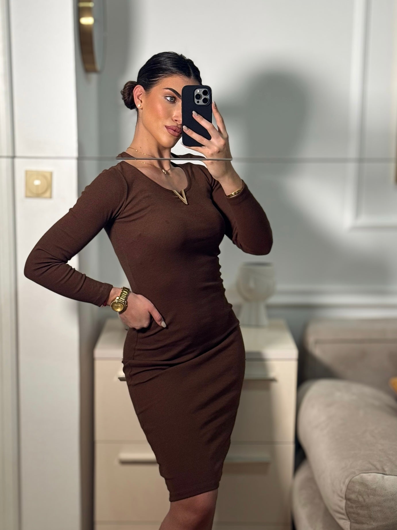 Ova divna, jednostavna haljina idealna je za svaki dan, ali i za posebne prilike kada želite da izgledate sređeno bez mnogo truda. Mekani, prijatni materijal lijepo prati liniju tijela i naglašava figuru, dok V izrez daje dodatnu ženstvenost i eleganciju.